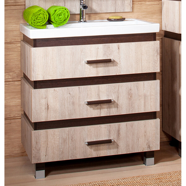 Тумба Бриклаер "Техас" это универсальная современная модель, которая подойдет практически к любому интерьеру ванной комнаты. Три вместительные ящика помогут Вам удобно разложить все нужыне аксессуары. Раковина в комплекте не поставляется!