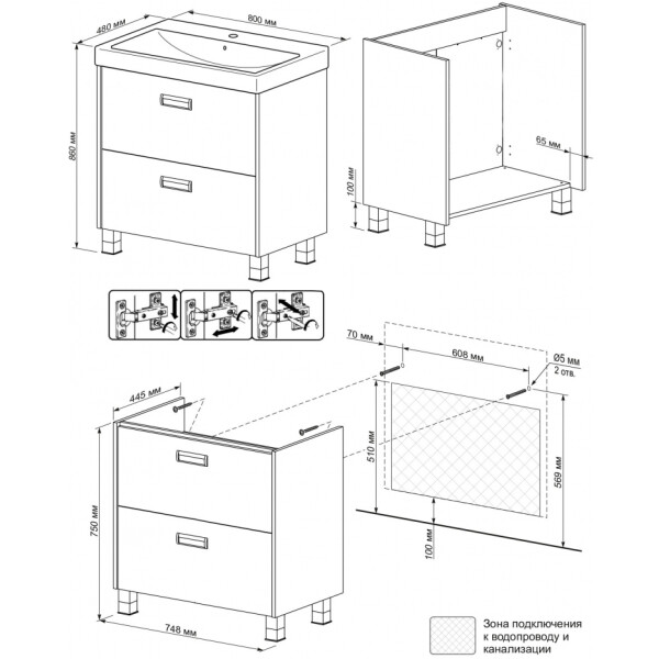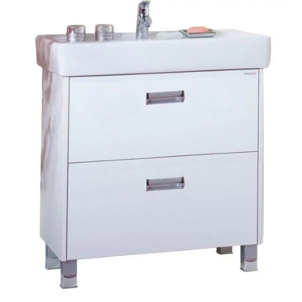 Белоснежная тумба под раковину Бриклаер Палермо 80 на ножках, с двумя выдвижными ящиками, дарит ощущение свежести, чистоты и уюта. Корпус выполнен из белого ЛДСП, фасад из белого ЛДСП, покрытого глянцевым лаком, ручки из металла, ножки из пластика. Тумба проявляет устойчивость к влажному воздуху и длительное время сохраняет свой первоначальный внешний вид. Тумба поставляется без раковины.