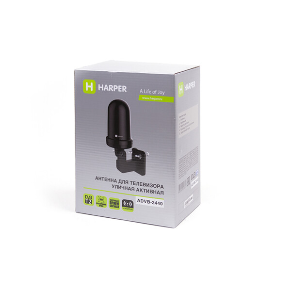 Harper ADVB-2440 предназначена для приема сигнала от наземных источников. Антенна работает не только с аналоговым сигналом, но и современными сигналом, но и современными цифровыми мультиплексами, включая стандарт DVB-T2, внедряемый в России в настоящий момент.