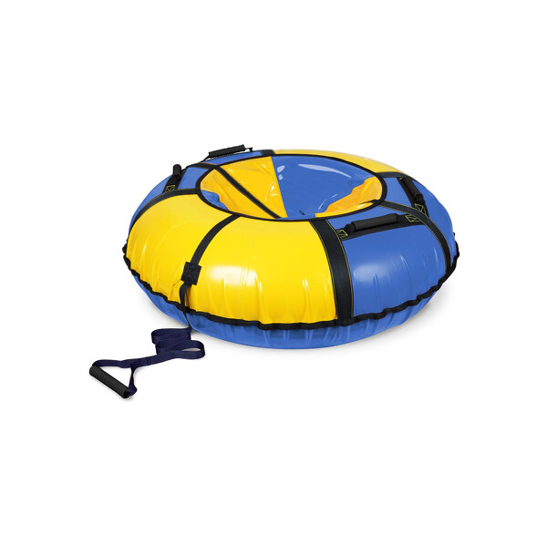 Красочный тюбинг из ткани подарит незабываемые впечатления от зимней прогулки. Водонепроницаемая ткань из которой изготовлена верхняя часть изделия, создаст дополнительное сопротивление и не позволит выскользнуть из тюбинга. А благодаря высококачественной тентовой ПВХ ткани с глянцевой поверхностью, из которой исполнено дно этой модели достигается идеальное скольжение. Усиленная камера входит в комплекте.