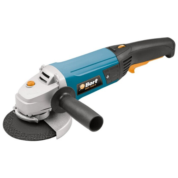 Шлифовальная угловая машина Bort BWS-1000-R – мощная болгарка с диаметром диска 125 мм. Она прекрасно подойдет для работы в домашней мастерской или на даче. При достаточно большой мощности, сохраняется небольшой вес инструмента и сравнительно небольшие размеры. УШМ имеет регулировку скорости, что позволяет работать в различных условиях с разными материалами. Для удобной и быстрой замены диска установлена функция блокировки шпинделя. Также, вы можете регулировать положение защитного кожуха без ключа. Вместе с самим инструментом поставляется не только боковая рукоятка, защитный кожух и ключ, но и дополнительный комплект щеток.