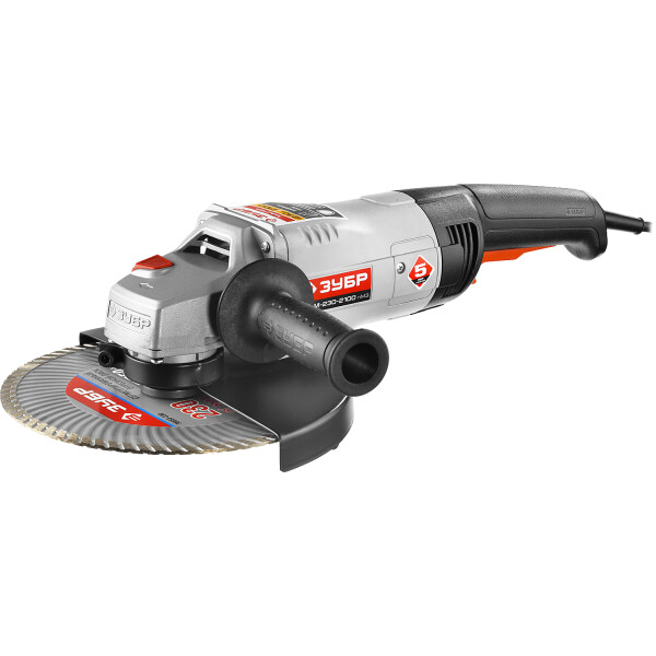 Углошлифовальная машина Зубр МАСТЕР УШМ-230-2100 ПМ3 предназначена для выполнения таких работ, как шлифовка, зачистка поверхностей и резка деталей из различных материалов. Блокировка шпинделя позволяет безопасно сменить диск. Для начала работы без рывков, в инструменте предусмотрен плавный пуск. Удобный ползунковый переключатель фиксируется в положении старт - для продолжительной работы.