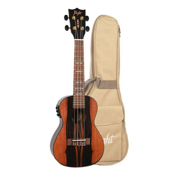 Укулеле-концерт Flight DUC 460 Ceq Amara класса "премиум". ёдля её изготовления используется древесина Амаро. Представьте Южную Америку с вечнозелеными тропическими лесами - край, где всегда царит лето. Именно там растет Амаро, из которой получаются смуглые красавицы укулеле с мистическим настроением и теплым кристально чистым звуком. Особого шарма добавляет тот факт, что каждая укулеле из Амаро имеет свой неповторимый рисунок древесных волокон - узоры, полосы, смоляные разливы. Таким образом, каждая укулеле DUС460 EQ AMARA уникальна.