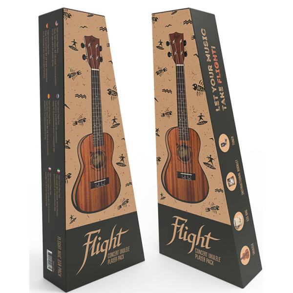 Укулеле-концерт Flight NUC PACK немного больше укулеле сопрано, но по прежнему компактна, при этом имеет больше ладов, что дает дополнительные возможности для игры. Эта укулеле подойдет как новичкам, так и музыкантам, которые уже играли на укулеле, но например, меньшего размера.