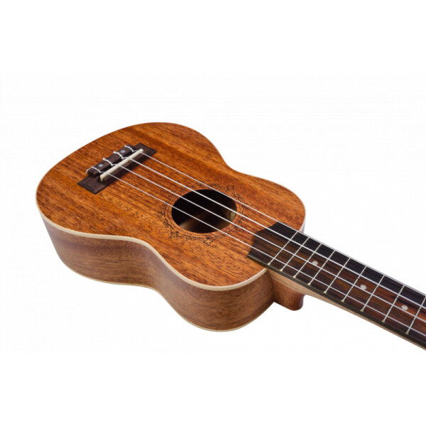 Укулеле-сопрано Flight DUS 321 MAH/MAH с красивой структурой дерева махогани шоколадного цвета с золотистым отливом. Корпус и верхняя дека, сделанные из махагони (красного дерева), придают инструменту бархатистое, мягкое звучание. Тембр инструмента идеально подходит для аккомпанирования вокалу - не перебивает голос, а органично дополняет его.