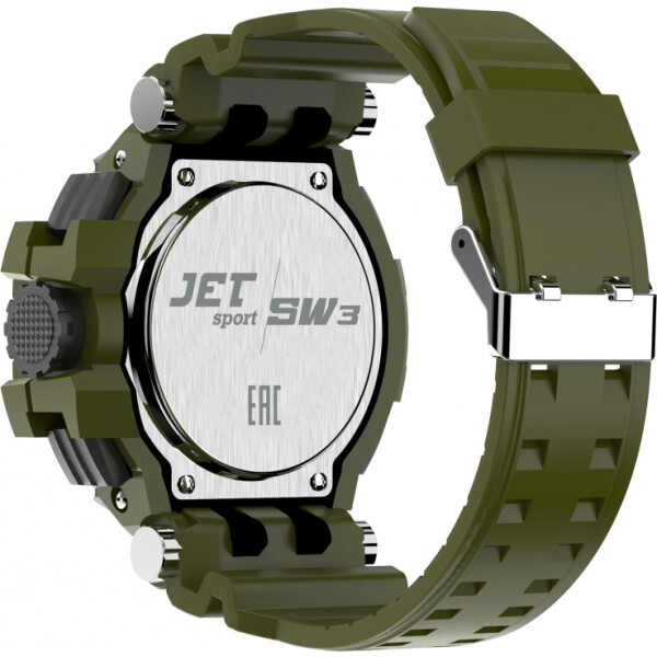 Смарт-часы Jet Sport SW3 разработаны для спортсменов. Они оснащаются барометром, шагомером, альтиметром. Удается определить пройденное расстояние, температуру воздуха, атмосферное давление, количество потраченных калорий, высоту, уровень ультрафиолетового излучения и т. д.