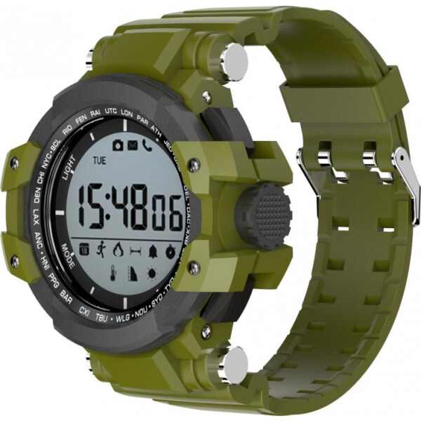 Дисплей оснащается функцией подсветки. Она будет полезна в темное время суток и позволит считывать информацию с экрана. Ремешок выполнен в черном цвете, в тон корпусу. Он изготовлен из эластомера, прослужит в течение продолжительного времени и обеспечивает надежную фиксацию на запястье.