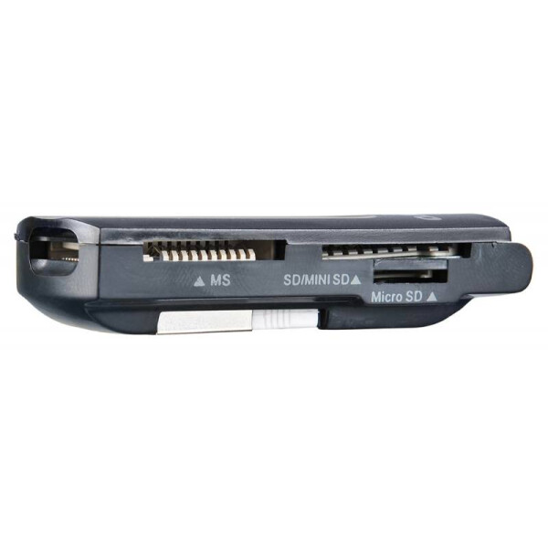 Он имеет большое количество разъемов для флеш-карт и поддерживает форматы карт TF, SD, SDHC, mini-SD, microSD, MS, MS Pro, MS Duo, MS Micro M2, MMC, RS-MMC. При этом размеры картридера достаточно скромные, не больше портативной флешки.