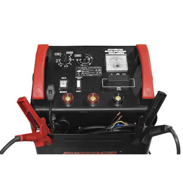 Пуско-зарядное устройство Парма УПЗ-1000 предназначается для запуска двигателя с севшим аккумулятором, а также для восстановления заряда свинцово-кислотной АКБ. Модель оснащается переключателями, стрелочным амперметром, что дает возможность визуально контролировать основные рабочие параметры. Системы защиты от перегрева и короткого замыкания позволяют избежать преждевременной поломки изделия. Для удобства эксплуатации в комплект поставки входит устройство дистанционного управления.