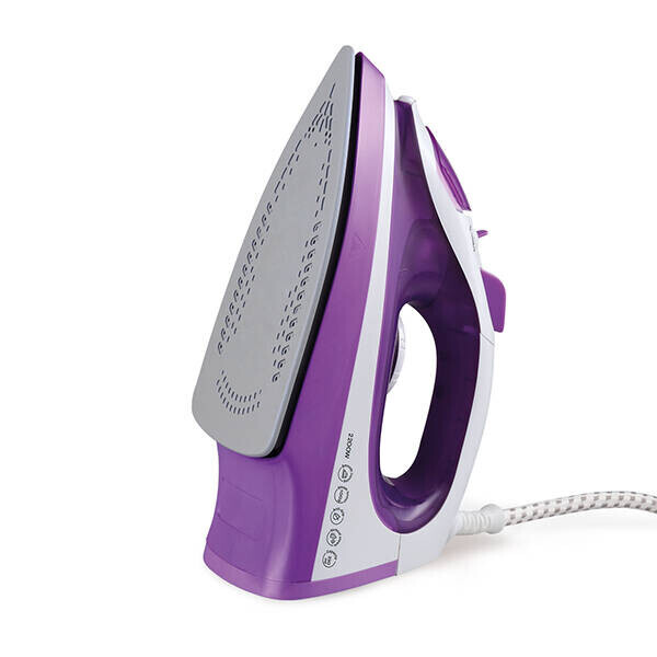 Утюг Blackton Bt SI1112 в феолетово-белом цвете с керамической подошвой, с функциями вертикального отпаривания и распыления.