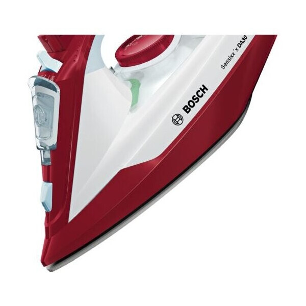 Красно-белый утюг BOSCH TDA3024010 отличается доступной ценой, привлекательным дизайном и высокой функциональностью. Имеется прорезиненная ручка и устойчивая подставка. Подошва производится из алюминия с керамикой, быстро нагревается и отлично скользит по поверхности. Вес устройства равен 1,6 кг, а его габариты составляют 12,5x16x29 см. Мощность BOSCH TDA3024010 достигает до 2400 Вт, что позволяет отлично справляться с разглаживанием тяжелых тканей. Предусматривается вместительный резервуар для воды на 320 мл, а также удобный мерный стакан, идущий в комплекте. Лучшее проглаживание пересушенных вещей гарантирует функция разбрызгивания и паровой удар, действующий со скоростью 150 г/мин. Имеющаяся защита от образования накипи в резервуаре и система самоочистки подошвы способствуют длительному сроку службы утюга. Комфортной эксплуатации способствует противокапельная система, желобок для пуговиц на подошве и шаровое крепление шнура, предотвращающее перекручивание. Также предусматривается наличие функции спрей.