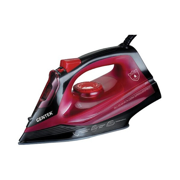 Утюг Centek CT-2351 RED с керамической подошвой, мощностью 2200 Вт. В наличии функции распыления, самоочистки и мощного парового удара. Производителем также предусмотрены защита от накипи и защита от протекания воды. Преимуществом утюга является наличие возможности вертикального отпаривания. В модели реализован яркий LED-индикатор. Емкость резервуара для воды равна 300 мл. Сетевой шнур имеет длину 1.5 м.