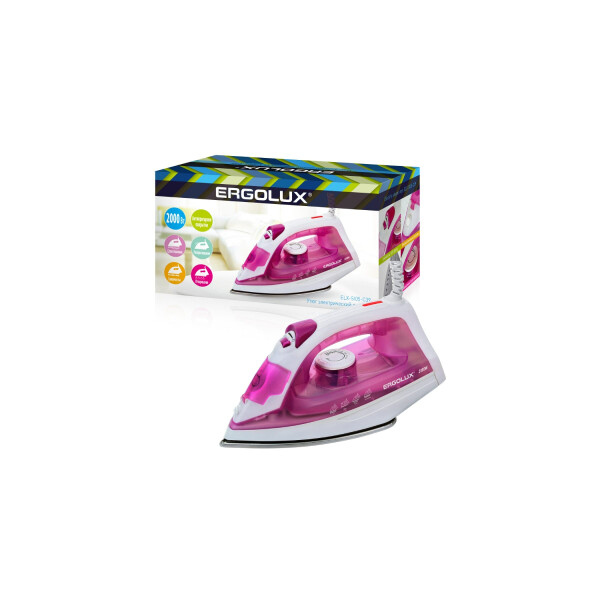 Паровой электрический утюг ERGOLUX ELX-SI05-C39 фиолетовый/белый, тефлон, 13976 предназначен для сухой глажки, глажки с паром и для влажной глажки со спреем.