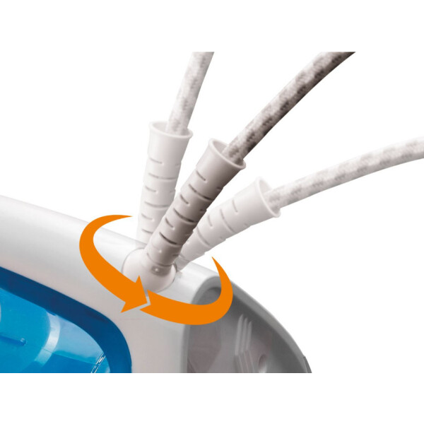 Утюг имеет шаровое крепление шнура, что позволяет шнуру свободно вращаться. Вращение на 360 значительно упрощает работу: вы можете свободно поворачивать утюг, гладить левой или правой рукой удобно и безопасно.