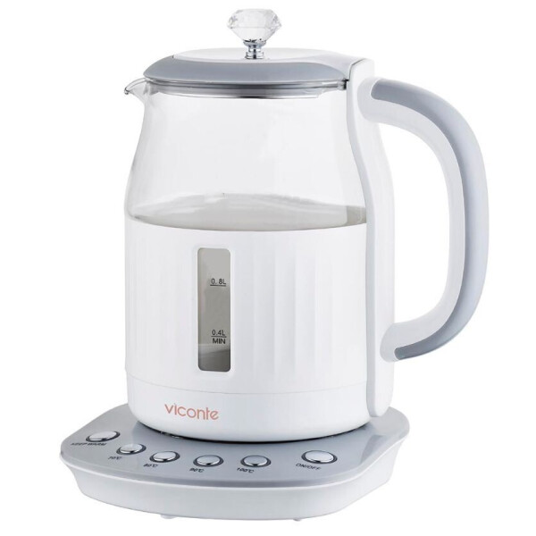 Электрочайник 2200 Вт, объем 1.7 л, корпус из высококачественного термостойкого стекла, закрытый нагревательный элемент, электронное управление с 4 температурными режимами 70 , 80 , 90 , 100 , возможность вращения чайника на 360, автоматическое отключение при закипании.
