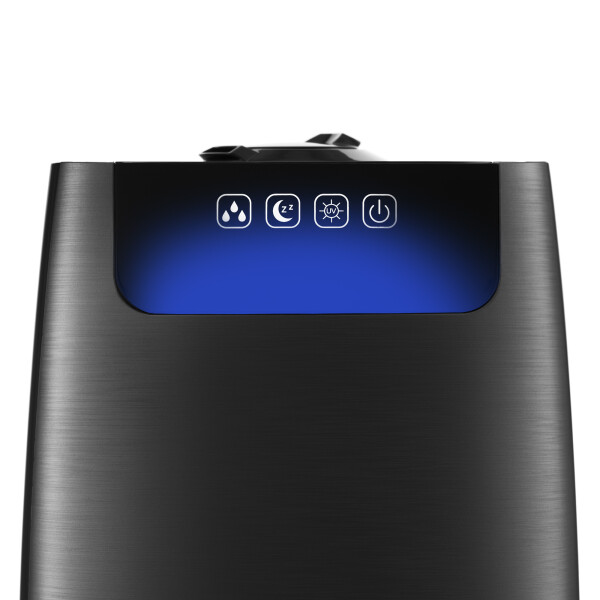 В увлажнителе Kitfort KT-2803 с помощью кнопок на передней панели можно установить интенсивность тумана, включить или выключить подсветку панели.