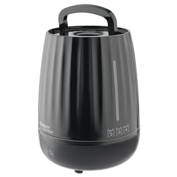 Оригинальная форма прибора станет изюминкой в помещении. Емкость снабжена удобной ручкой для переноски и удобства наполнения резервуара. Вместительный резервуар объемом 4 литра позволит забыть о доливе воды мининмум на 13 часов. Для создания приятной и ароматной атмосферы, достаточно лишь добавить несколько капель аромамасла в капсулу, которая находится на поддоне прибора. При отсутствии воды в увлажнителе, прибор автоматически отключается для сохранения длительного срока службы прибора.