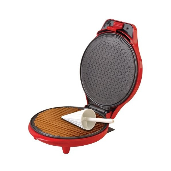 Вафельница Centek CT-1441 обладает ярким и заметным красным корпусом. Представленное устройство позволяет выпекать круглые тонкие вафли, чтобы лакомиться ими просто так или начинять джемом, вареньем, кондитерским кремом. Вместе с представленной моделью вы сможете разнообразить любимый десерт детства или научиться готовить его с нуля. В комплект поставки входит конус для вафельных рожков, благодаря чему вы можете делать даже домашнее мороженое с использованием представленной вафельницы. Поможет в этом 700-ваттная мощность устройства и антипригарное покрытие рабочей поверхности.