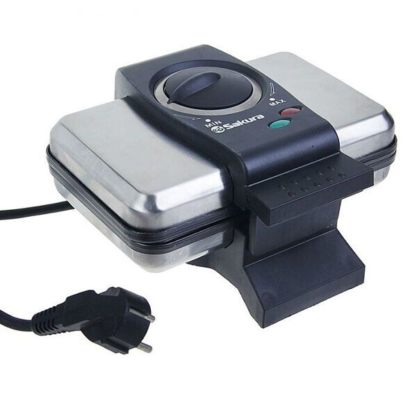 Вафельница электрическая, 1000 Вт, металлический корпус, форма для толстых венских вафель, регулируемый термостат