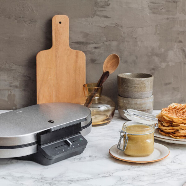 Вафельница Wilfa DWA-517 S с мощностью 1200 Вт. Вафельница обжаривает равномерно, и с помощью регулируемого термостата (1-5) вы можете выбрать уровень прожарки, хотите ли вы светлую, золотистую или темную и хрустящую вафлю. Сигнальная лампочка сигнализирует, когда вафля готова. Двойное нескользящее покрытие позволяет легко вынимать вафлю. Легкая чистка.