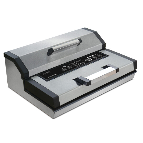 Вакуумный упаковщик CASO FastVAC 4000 понравится тем, кто любит кулинарные эксперименты или очень трепетно относится к вопросам гигиены. Пригодится он и на небольших пищевых производствах или продовольственных лавках для качественной упаковки. Мясо, рыба и птица в вакууме сохраняют свежесть до недели, сыр – 14 дней, а овощи и фрукты – более года. Все это потому, что в бескислородной среде не размножаются бактерии, вызывающие порчу продуктов.