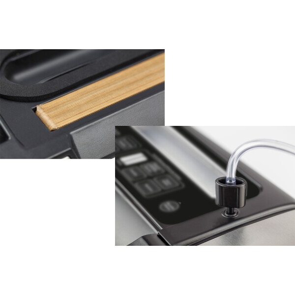 Корпус модели CASO FastVAC 500 произведен из качественной нержавеющей стали, не подверженной появлению коррозийного налета, что увеличивает ее эксплуатационный период. При помощи встроенных индикаторов вы узнаете, когда стартовал процесс вакуумной упаковки продуктов и какой режим работы установлен в приборе.
