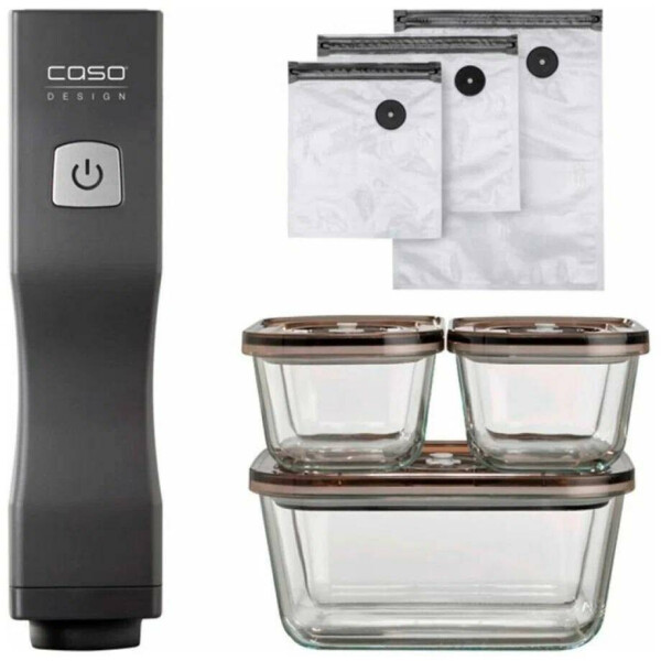 Ручной вакуумный упаковщик CASO Vacu OneTouch Eco-Set без камеры быстро откачивает воздух из пакетов и контейнеров. Используйте для заготовки и упаковки продуктов на месте, даже если рядом нет розетки. Сохраняйте продукты в вакууме сразу после разделки. В отличие от полностью ручных устройств CASO Vacu OneTouch работает на встроенном Li-ion аккумуляторе, и откачивает воздух с давлением до 0,4 бара и достигает производительности 3 л/мин.