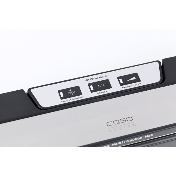 Вакуумный упаковщик CASO VR 190 мощностью насоса 9 литров в минуту. Для пакетов и рулонов шириной до 30 см. Крышка с вставкой из нержавеющей стали. Съёмная вакуумная камера для лёгкой очистки. Возможность откачивания воздуха из вакуумных контейнеров. Электронный контроль температуры запаивания. В комплекте: 10 пакетов (20 x 30 см), переходник для контейнеров.