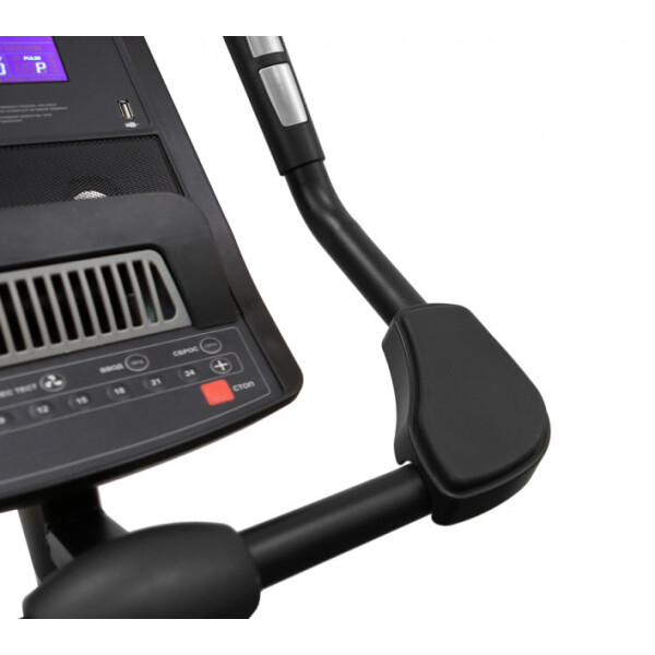 Основные преимущества U800M это бесконтактная электромагнитная приводная система высшего класса (EMS) и сбалансированный маховик с инерционным весом 15 кг, которые обеспечивают эффективную биомеханику. Мягкое педалирование и равномерное распределение нагрузки на всем цикле движения осуществляется за счет супернадежного литого шатуна в педальном узле с использованием качественных подшипников. Тренажер имеет 24 уровня нагрузки, что позволит комфортно заниматься любому пользователю, есть быстрые клавиши регулировки нагрузки на поручнях.