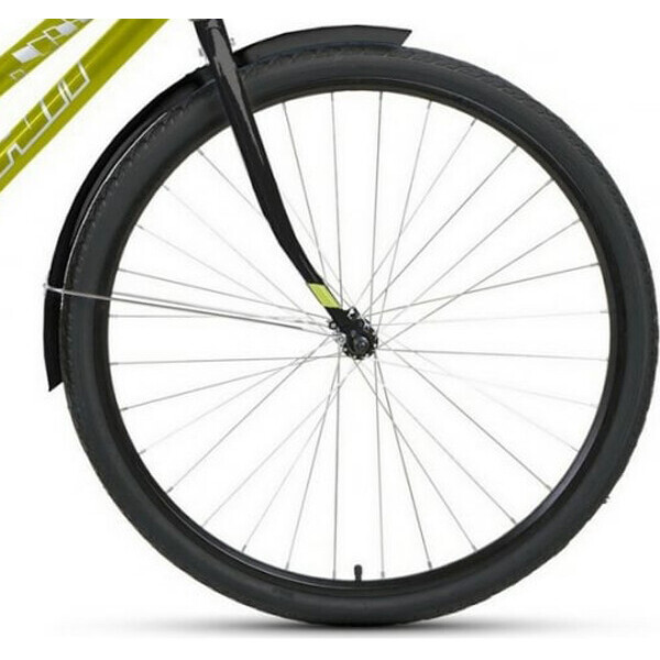 Полноразмерные крылья и щиток на цепь защищают от грязи из-под колес. Подпружиненное мягкое седло амортизирует кочки и выбоины, другие неровности пути. Жесткая вилка улучшает управляемость.