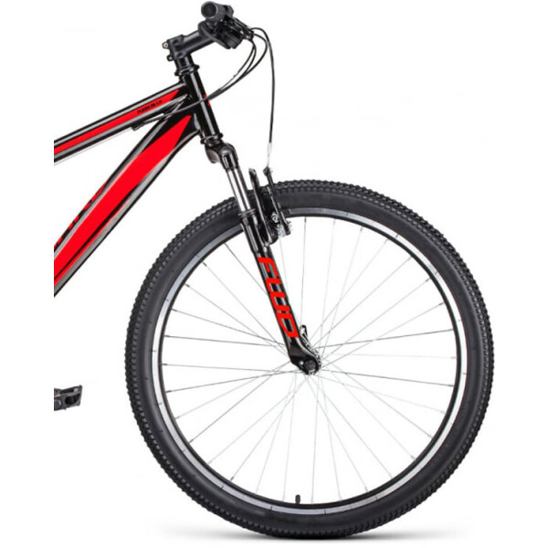 Данная модель в черно-красном цвете с рамой 17. Идеальный вариант для городских дорог и езды по пересеченной местности.