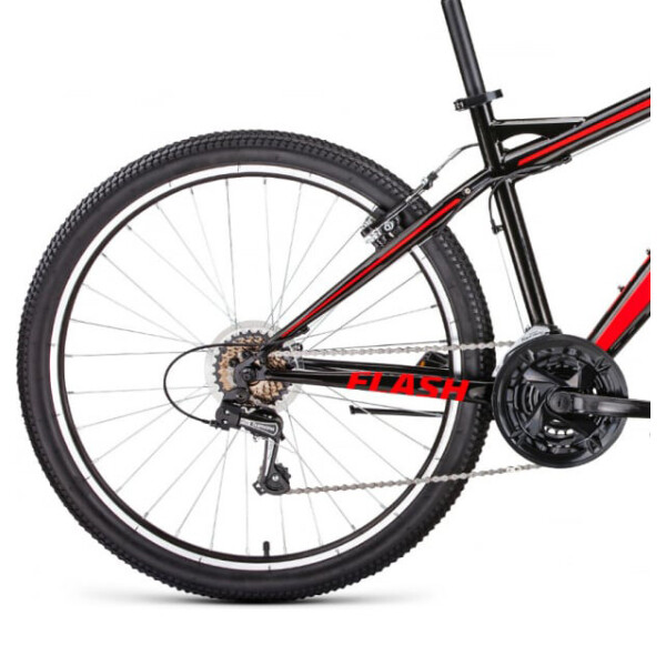 Forward Flash универсальный прочный хардтейл. С ним можно покорить любые дороги и направления. Каретка защищена от воздействия внешней среды: грязи, воды, пыли. Стальная рама, 21 скорость, ободные тормоза.