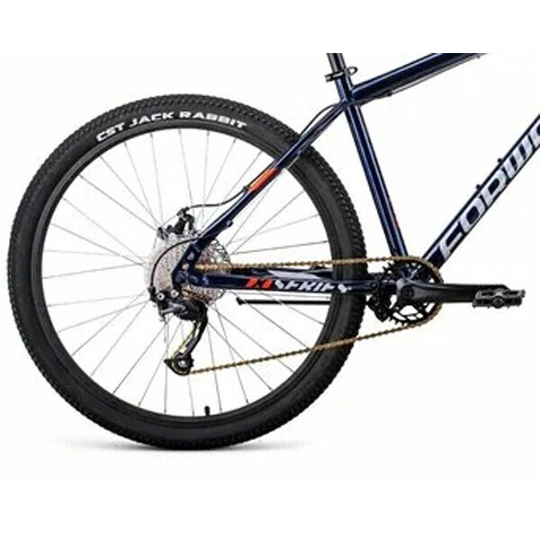Горный велосипед с навесным оборудованием Microshift, 9 скоростей. Технические особенности: прочная стальная рама, стальная амортизационная вилка FWD 286, двойные алюминиевые обода дисковые механические тормоза Clarks CMD-21, подножка. Подходит для прогулочной езды по шоссе и несложной пересеченной местности.
