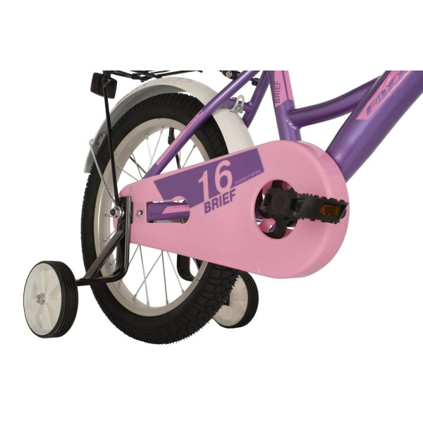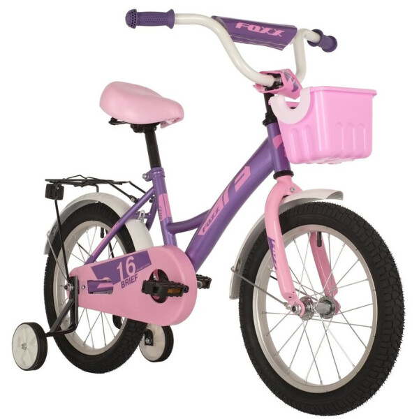 Детский велосипед FOXX Brief 16. Городская модель для удобной езды - регулируемый руль и седло позволят обеспечить комфортную и правильную посадку. На модели имеются боковые колеса, благодаря чему данный велосипед можно использовать в качестве первого для ребенка, ведь боковые колеса обеспечат поддержку при обучении. Защита цепи предотвратит случайные попадания одежды в движущийся механизм шатуна. Качественные материалы покрышек, вилки и рамы обеспечивают отличное сцепление, накат и управляемость велосипедом. Корзинка и багажник позволят перевозить игрушки или различные предметы.