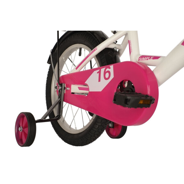 Красивый и яркий Foxx Simple обязательно порадует вашего ребенка. Велосипед собран на прочной стальной раме и колёсах 16, подходящих для детей от 4 до 7 лет. Он оборудован ножным тормозом, полноразмерными крыльями и специальным кожухом, изолирующим цепь. На велосипед установлены багажник сзади и корзинка спереди, чтобы можно было перевозить свои любимые игрушки, а также классический звонок. Для помощи в обучении катанию в комплекте идут боковые колёса, которые в последствии легко снимаются.