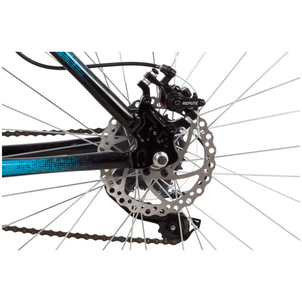 Горный хардтейл на базе надежной алюминиевой рамы с амортизационной вилкой с ходом 50мм. Модель оборудована дисковыми механическими тормозами и трансмиссией на 18 скоростей, которая позволит с легкостью преодолевать все подъемы и спуски.