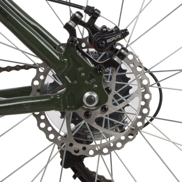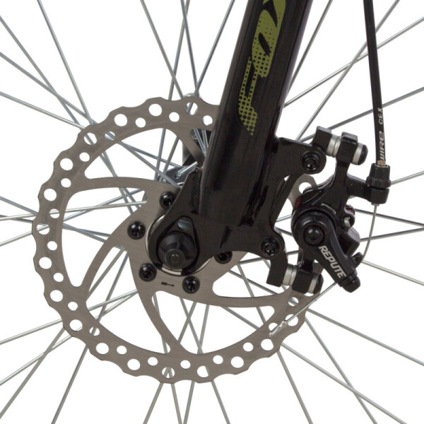 Горный хардтейл на базе надежной алюминиевой рамы с амортизационной вилкой с ходом 50мм. Модель оборудована дисковыми механическими тормозами и трансмиссией на 18 скоростей, которая позволит с легкостью преодолевать все подъемы и спуски.