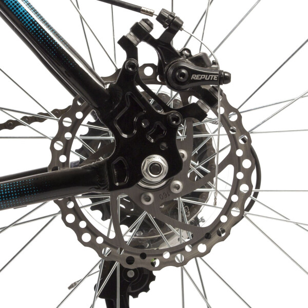 Горный хардтейл на базе надежной алюминиевой рамы с амортизационной вилкой с ходом 50мм. Модель оборудована дисковыми механическими тормозами и трансмиссией на 18 скоростей, которая позволит с легкостью преодолевать все подъемы и спуски.