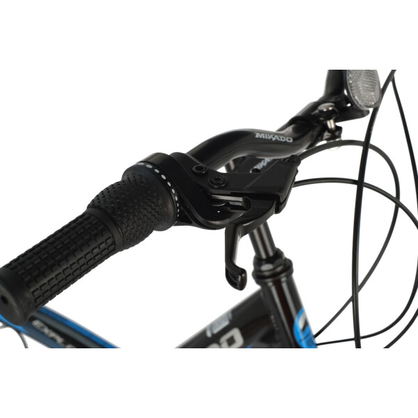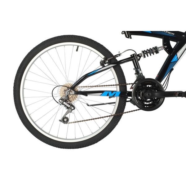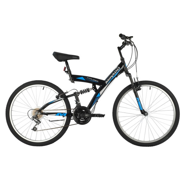 MIKADO EXPLORER 26 - двухподвес начального уровня на колесах классического диаметра 26 дюймов. Модель отлично подойдет для ознакомления с велосипедами с передней и задней подвеской. Трансмиссия на 18 скоростей позволяет подобрать подходящую передачу для различных ситуаций и комфортно чувствовать себя как при подъеме в горку, так и на спусках или плоских участках трассы. Цепкие V-brake тормоза просты в обслуживании и позволяют быстро сбросить скорость и остановиться.