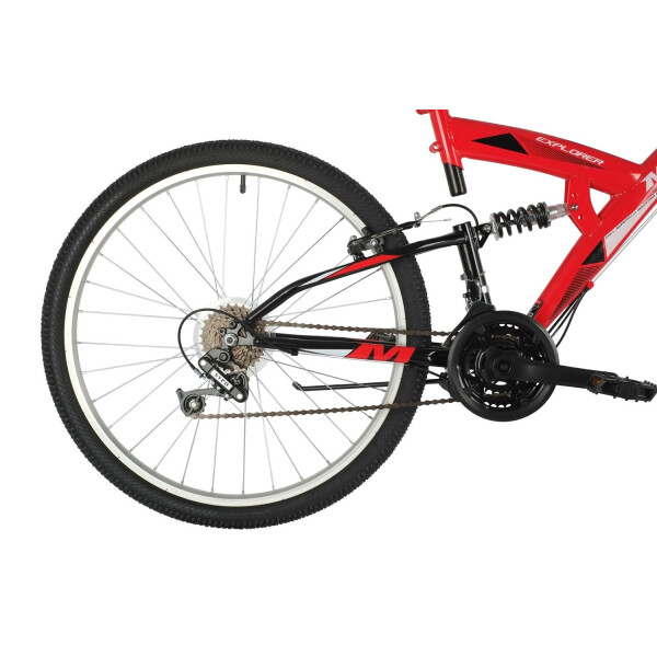MIKADO EXPLORER 26 - двухподвес начального уровня на колесах классического диаметра 26 дюймов. Модель отлично подойдет для ознакомления с велосипедами с передней и задней подвеской. Трансмиссия на 18 скоростей позволяет подобрать подходящую передачу для различных ситуаций и комфортно чувствовать себя как при подъеме в горку, так и на спусках или плоских участках трассы. Цепкие V-brake тормоза просты в обслуживании и позволяют быстро сбросить скорость и остановиться.