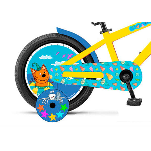 Велосипед детский имеет два страховочных колеса, которые являются съемными и помогают удерживать равновесие. Благодаря этому транспортное средство оптимально для обучения ребенка самостоятельному катанию. Малый вес изделия создает комфортные условия во время транспортировки. Модель оснащена специальной корзиной на руле, в которую можно положить бутылку с водой, игрушки, одежду и другие вещи. При производстве рамы применяется прочная сталь высокого качества. Металл характеризуется устойчивостью к неблагоприятному внешнему воздействию и механическим повреждениям.