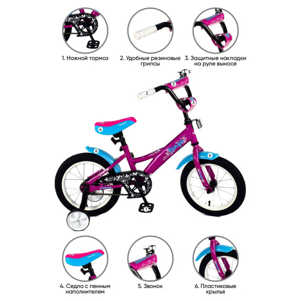 Детский велосипед Navigator BINGO, колеса 14, стальная рама, стальные обода, ножной тормоз, защитная накладка на руле и выносе, кронштейн заднего катафота.