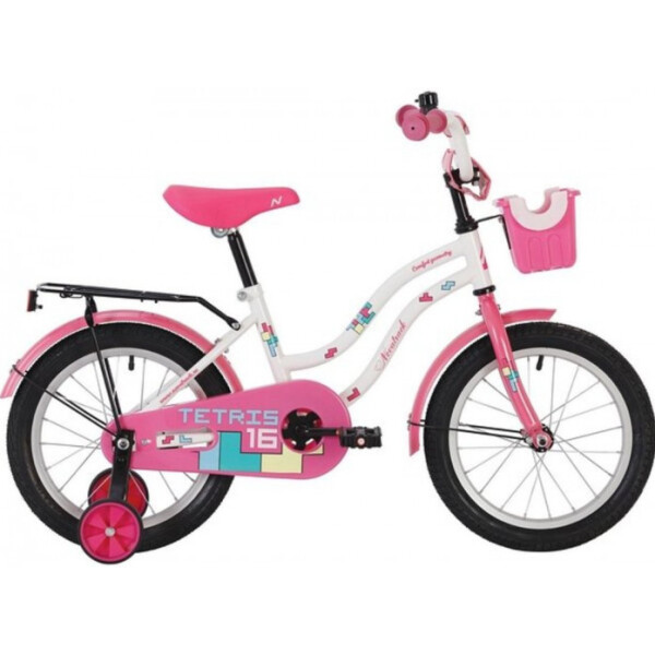 Велосипед Novatrack 141TETRIS.WT20 отличный выбор для вашего ребенка! Комфортный, безопасный и надежный, этот велосипед представлен в трех цветах белом, розовом и фиолетовом. Преимущества Tetris яркие компоненты, стальная изящная рама, удобная корзина, стальной багажник для перевозки игрушек. Удобные регулировки позволят подобрать комфортную посадку, а идущие в комплекте крылья защитят от грязи и брызг в дождливую погоду. Имеется защита цепи и дополнительные колесики. Идеальный байк для начинающих!