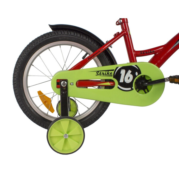 Хотите, чтобы ваш ребенок развивался и укреплял здоровье? Тогда ему нужен удобный и надежный велосипед Novatrack Strike 16, рассчитанный на ребят 3-5 лет. Одного взгляда малыша хватит, чтобы раз и навсегда влюбиться в свой новенький двухколесный транспорт, который можно назвать и четырехколесным. Велосипед собран на базе рамы с универсальной геометрией, которая позволяет легко взобраться или слезть с велосипеда маленькому наезднику. При этом велосипед имеет такой вес, что маленький ребенок сам легко справляется со своим транспортным средством.