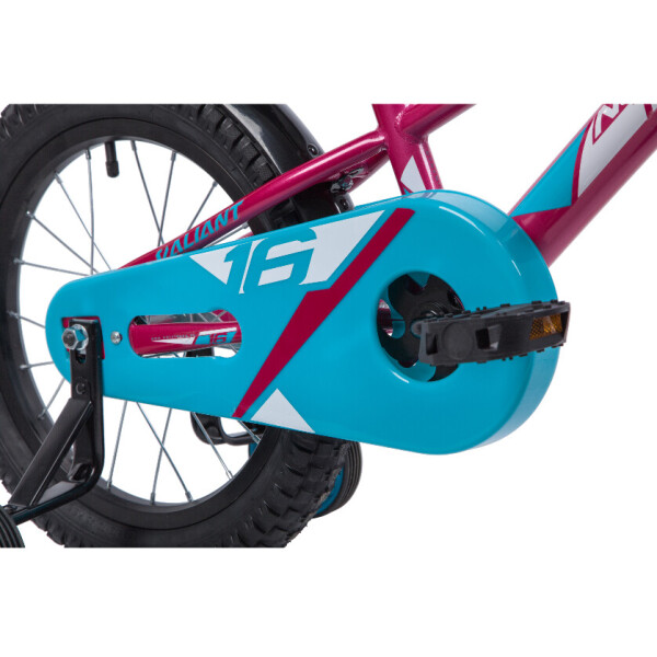 Идеальная модель велосипеда для мальчиков и девочек - Novatrack Valiant 16 на стальной раме. Качественная сборка и надежные компоненты обеспечат долгий срок службы. Байк оснащен ножным тормозом, накладкой на вынос руля и защитой цепи. Сиденье и руль регулируются по росту ребенка в высоту. Светоотражающие элементы, входящие в комплект, делают велосипед заметным в темноте. Для начинающих маленьких райдеров есть еще и съемные дополнительные колеса, которые при необходимости можно снять