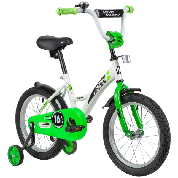 Велосипед Novatrack Strike 16 порадует и малышей, и их родителей. Качественная сборка и доступная стоимость одни из главных преимуществ этого велосипеда. Прочная стальная рама выдерживает сильные нагрузки, что даст прослужить этому байку не один сезон. Оснащен дополнительными колесиками, которые легко снять при необходимости, обеспечивает безопасность и равновесие при езде для начинающих юных велосипедистов. Ножной тормоз прост в обращении, поэтому не вызовет у ребенка трудностей. Кроме того, велосипед оснащен удобным багажником, звонком и защитой цепи.
