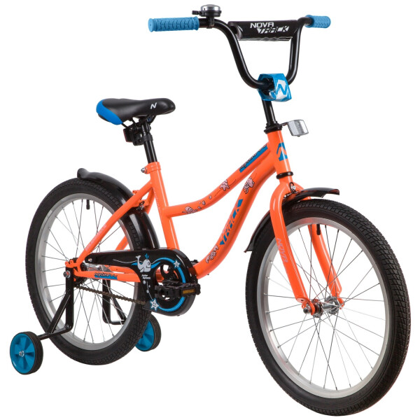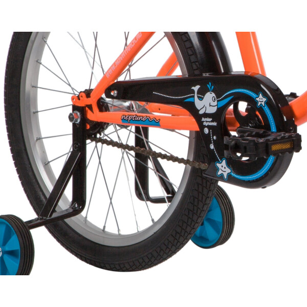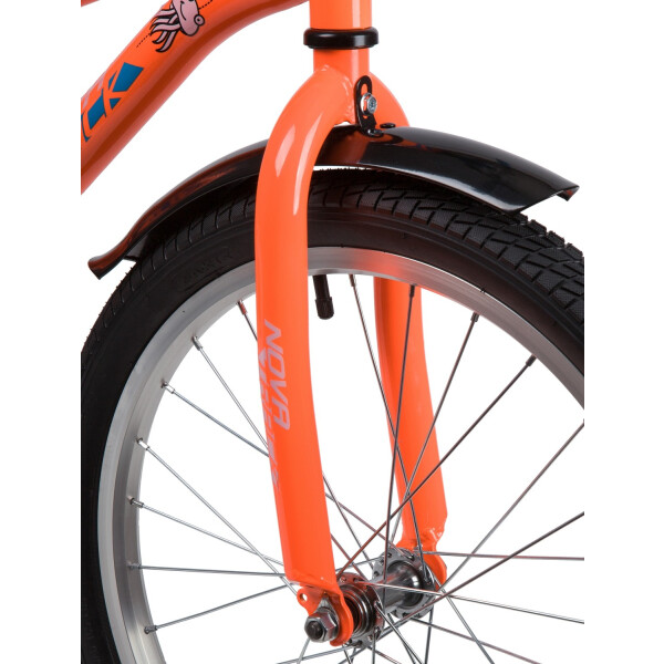 Novatrack Neptune 20 - стильный и яркий велосипед, рассчитанный для детей 5-9 лет. Модель снабжена ограничителем поворота руля, что не позволит ребенку слишком сильно вывернуть переднее колесо велосипеда и упасть. Установлены дополнительные опции защита цепи, стильные укороченные крылья, мягкие накладки, которые служат еще и элементом дизайна, громкий звонок и катафоты.