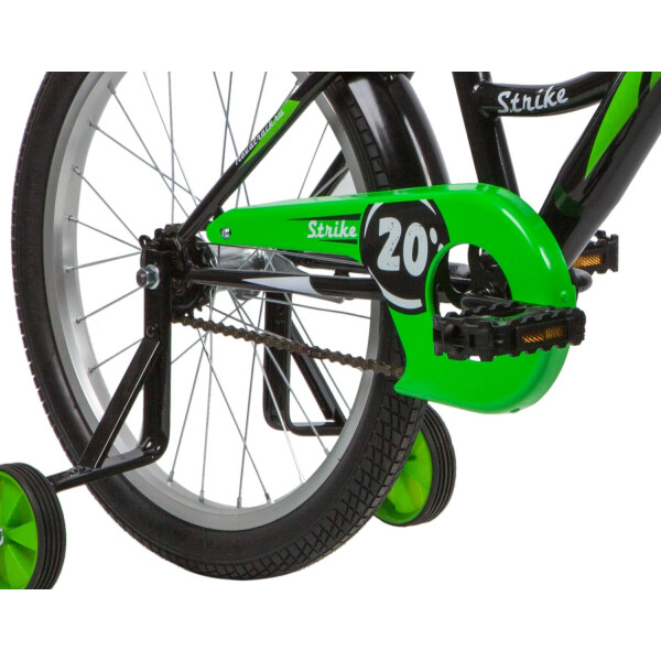 Велосипед Novatrack 203Strike это просто крутой велосипед! Объясним почему - качественная сборка и доступная стоимость главные его преимущества. Прочная стальная рама выдержит ежедневные катания и прослужит не один сезон. Наличие дополнительной пары колес, которые легко снять при необходимости, обеспечивает безопасность и равновесие при езде для начинающих юных велосипедистов. Ножной педальный тормоз прост в обращении, поэтому не вызовет у ребенка трудностей или вопросов. Цепь полностью защищена.