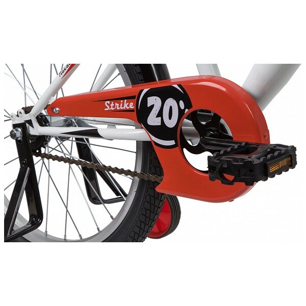 Велосипед Novatrack Strike 20 достоин вашего внимания! Лаконичный дизайн и качественная сборка неоспоримые преимущества этого велосипеда. Прочная стальная рама выдерживает сильные нагрузки. Наличие дополнительной пары колес, которые легко снять при необходимости, обеспечивает безопасность и равновесие при езде для начинающих юных велосипедистов. Ножной педальный тормоз прост в обращении, поэтому не вызовет у ребенка трудностей. Цепь защищена специальным кожухом. Байк оснащен багажником и громким звонком.