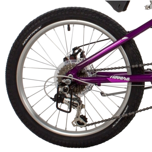 Novatrack Novara 6.D - это замечательный стильный велосипед для девочек. Обладает низким весом благодаря алюминиевой раме и ободам, а 6-скоростная трансмиссия Shimano с эргономичными ручками переключения позволяет не тратить слишком много усилий даже при езде в гору. Амортизационная вилка обеспечивает мягкую езду даже по пересеченной местности. Удобные регулировки позволяют подобрать нужную высоту руля и седла, обеспечивая максимально комфортную посадку. О безопасности позаботzтся комплект светоотражающих элементов, защита передней звезды и надежные дисковые тормоза.